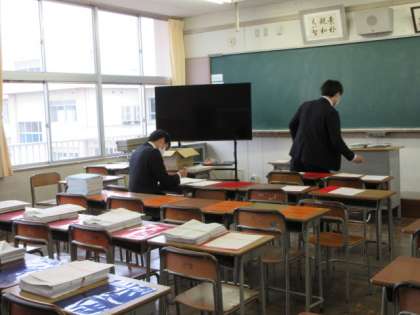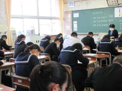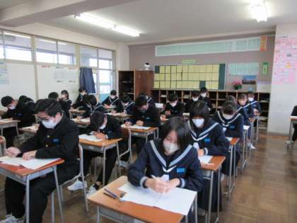 3年生は、本日、全国学力・学習状況調査です。国語、数学、英語の3教科に取り組みました。調査用紙回収後、先生は確認作業です。