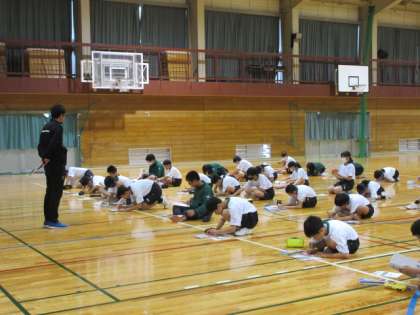 授業に使うノート等に記名しています。最初が肝心です。1年間頑張りましょう。