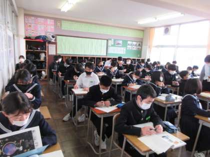 2年生の授業の様子です。 先生の話をしっかりと聞いていました。