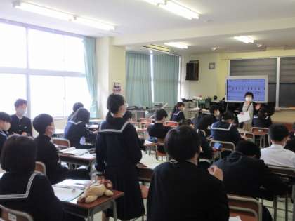 3組は、音楽の授業で、音楽の特徴をいかした表現について考え、