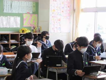 4組は、国語の授業で、でクロムブックを使った調べ学習をしているところでした。