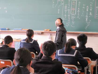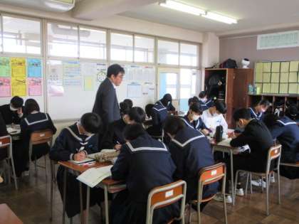3組は、国語の授業で、先生の話に引き込まれている様子、