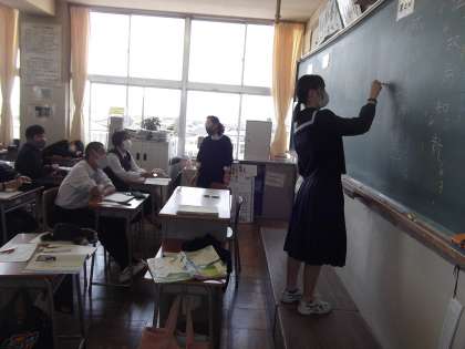 5/10(水)3年生の授業の様子 公開日 2023/05/10 更新日 2023/05/10 第3学年 3−3国語、3−4英語の授業の様子です。 漢文の学習では、校長先生がよく使う言葉は?という問いに、生徒が板書するシーンがありました。(「不易流行」です)