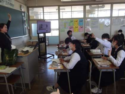 5/12(金)3年生の授業の様子2 公開日 2023/05/12 更新日 2023/05/12 第3学年 3−2英語、3−4家庭の授業の様子です。 「昨日、何時に寝たかな」という教師の問いに、挙手で答えていました。睡眠時間はしっかり確保したいですね。