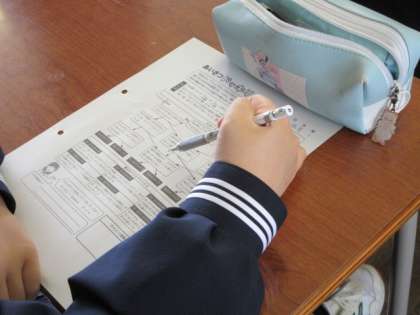 2年生は、「社会に学ぶ『14歳の挑戦』」に向け、「挨拶」について考えました。チェックシートを活用して、今までの自分の「挨拶」を振り返りました。時と場合に応じた、さわやかな挨拶ができる北中生を目指しましょう。
