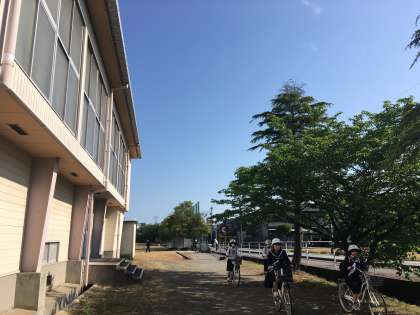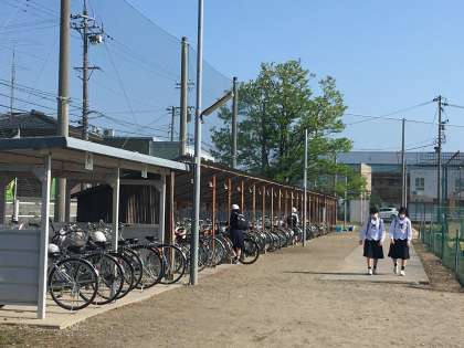 今日も生徒は元気に登校しています!! カッターシャツや夏用の長袖セーラー服を着用する生徒が増えてきました。