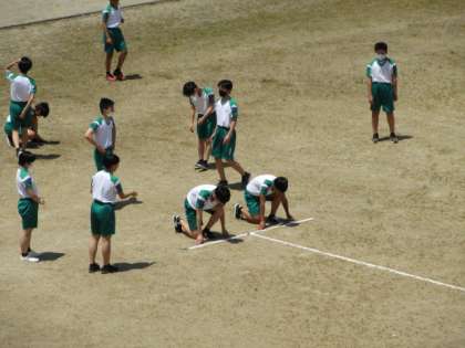保健体育の授業では、50m走のタイムの計測をしました。 クラウチングスタートもさまになってきました。