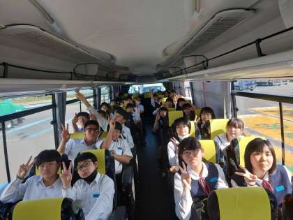 トイレ休憩のため、尼御前SAに入り、只今出発しました。旅程は順調で、生徒は元気です。日差しが強く、暑い1日になりそうです。