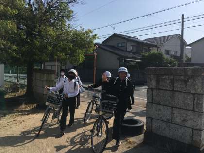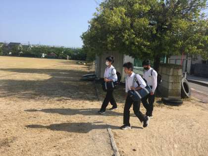 快晴の空の下、生徒は元気に登校しています!!こんな素晴らしい天気の日は、一日がとても楽しみです。