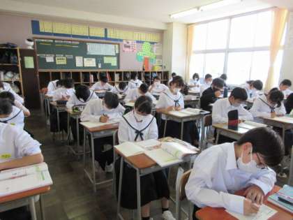 大変暑い日になりましたが、授業に集中しています。 授業の最後のまとめを真剣に書いていました。