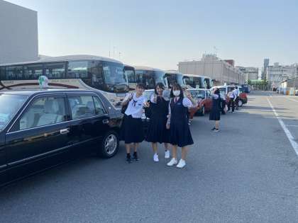 集合場所に、笑顔いっぱいの表情で続々戻ってきています。 今からホテルに向かいます。