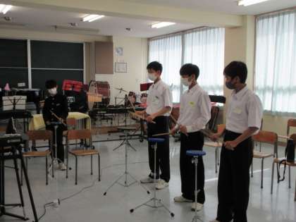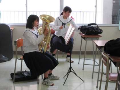 1・2年生だけの部活動です。 吹奏楽部は、パート別練習です。集中しています。