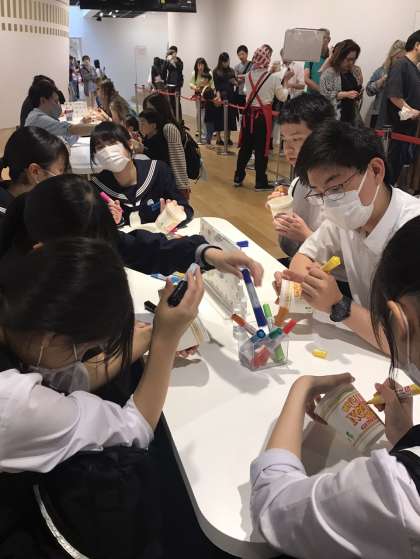 3組、カップラーメンミュージアムで、オリジナルカップラーメンを作成中です。