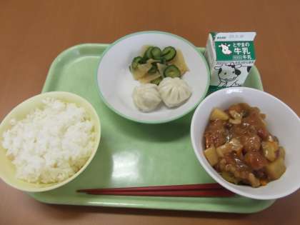 5/23(火)今日の給食 公開日 2023/05/23 更新日 2023/05/23 給食 「酢豚」について。 日本では黒酢を使うことが多いですが、欧米ではトマトケチャップを使うようです。そのため使用する肉は、日本は豚肉ですが、欧米では豚肉より鶏肉が提供されることが多いそうです。 <献立> ごはん 牛乳 酢豚 えび包子 華風和え
