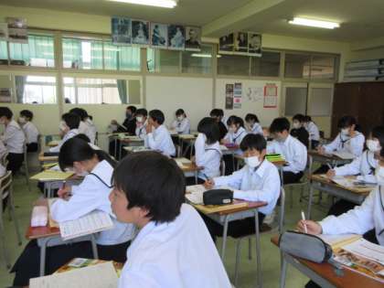 今日も、授業に集中しています。 音楽は、鑑賞の授業でした。ヴィヴァルディ作曲「春」について学びました。