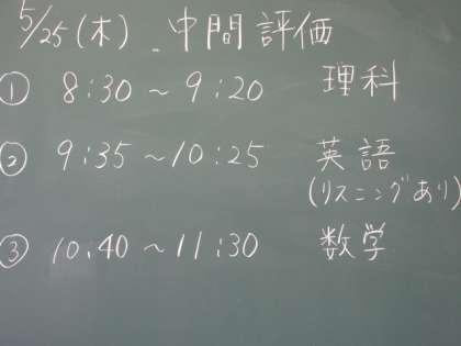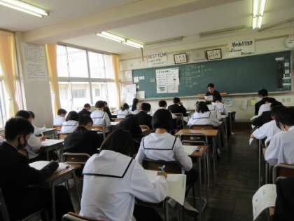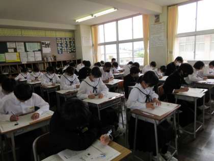 1年生にとって、初めての定期評価です。 英語のリスニングテストに集中していました。