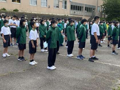 北中生が司会進行・各旗の掲揚を担当し、フレッシュタイムが始まりました。