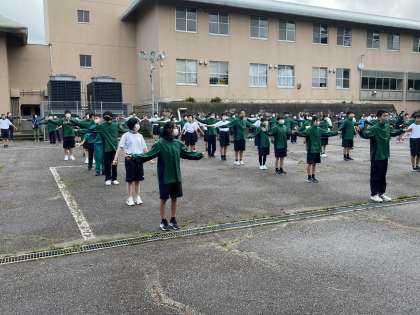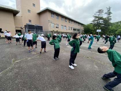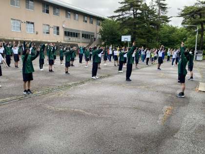 心身を目覚めさせるため、みんなでラジオ体操をしています。