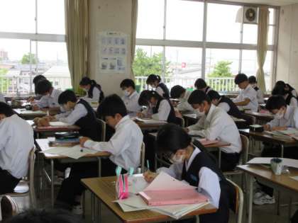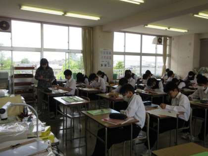 美術の授業です。 ケント紙に下書きをしていました。 静かに作業に集中しています。
