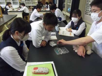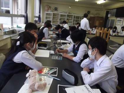 6/2(金)授業の様子 3年理科 公開日 2023/06/02 更新日 2023/06/02 第3学年 3年生の理科では、イオンのなりやすさについて実験で調べています。ちょっとした変化にも注目し、データを集めています。