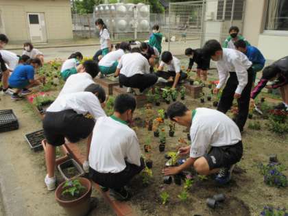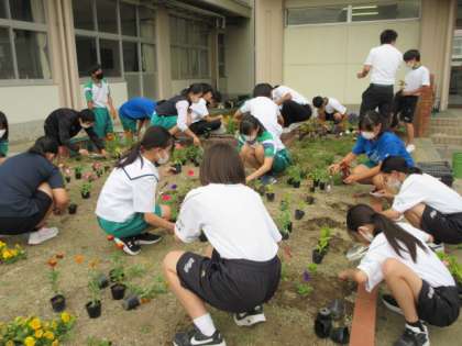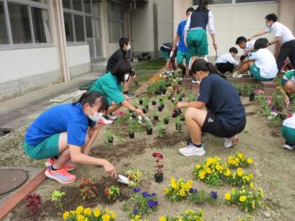 放課後の活動 公開日 2023/06/06 更新日 2023/06/06 北中NEWS 放課後、美化福祉委員会とボランティアのみなさんで、花壇に花苗を植えました。花が咲いたときをイメージして、どこにどう植えるのかを考えながら行いました。新しい花壇が楽しみです。ありがとう!