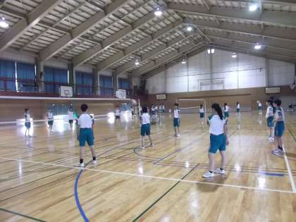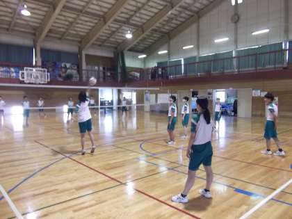 6/7(水)授業の様子 3年生その2 公開日 2023/06/07 更新日 2023/06/07 第3学年 体育では、バレーボールに取り組んでいます。男女混合のグループで対戦しながら、技能の向上を目指しています。3回で返すのがなかなか難しいようですが、声を掛け合って仲良くプレーしています。