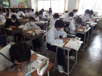 今日も1年生は、集中して授業に取り組んでいます。