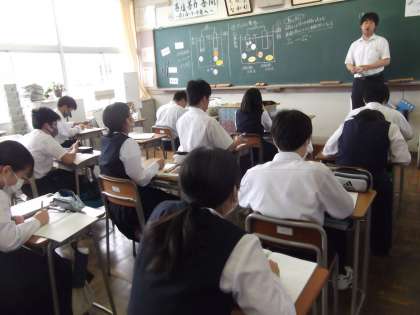 6/9(金)授業の様子 3年生2 公開日 2023/06/09 更新日 2023/06/09 第3学年 理科では、電子の流れについてモデルを使って考えていました。 技術では、電子部品について学習が進められていました。