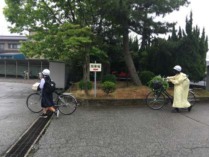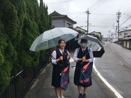 生徒は、雨にもめげず元気に登校しています!!