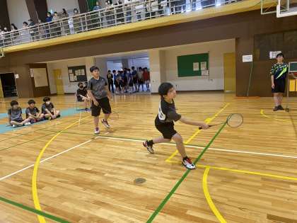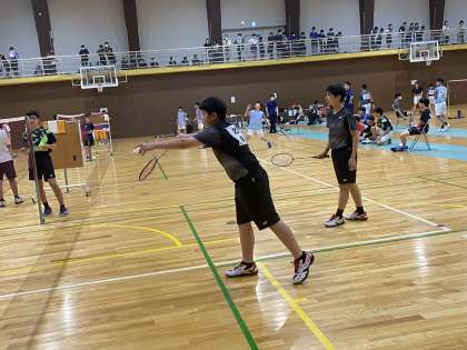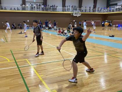 男子バドミントンの個人戦(ダブルス)の様子です。