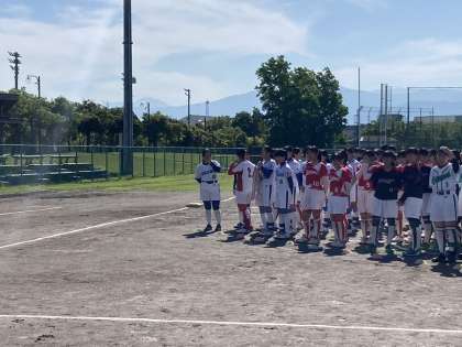 昨日の試合が雨天順延となり、本日初戦となりました。奥田中学校さんと合同チームで出場しています。対戦相手は、呉羽中学校さんです。