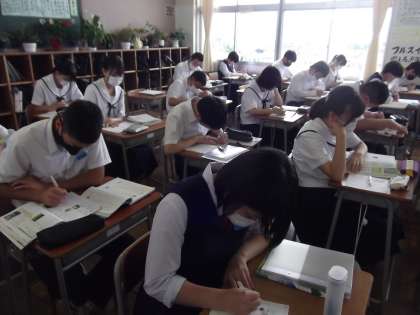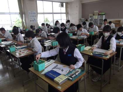 6/21(水)授業の様子 3年生 公開日 2023/06/21 更新日 2023/06/21 第3学年 3年生は、落ち着いて、しかも集中して授業に取り組んでいます。 美術では、ポスターの色塗りの段階です。遠近を意識した下絵に、色の効果を盛り込んでさらに奥行きのある作品に仕上げようと、丁寧に作業に取り組んでいます。