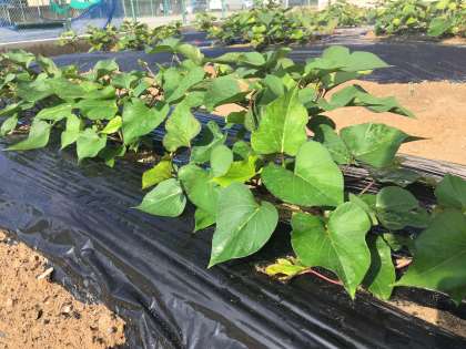 みんなで植えたサツマイモ!!だんだん緑が濃くなってきました!!