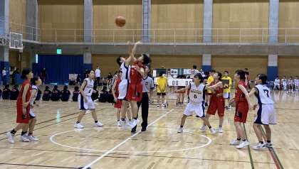 女子バスケットボール競技 いよいよ決勝戦が始まりました!! 対戦相手は、強豪、奥田中学校です。
