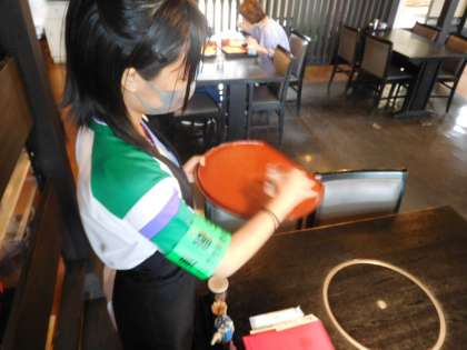 かね久 針原店 :お客様にお冷を運んだり、注文を聞いたりしています。