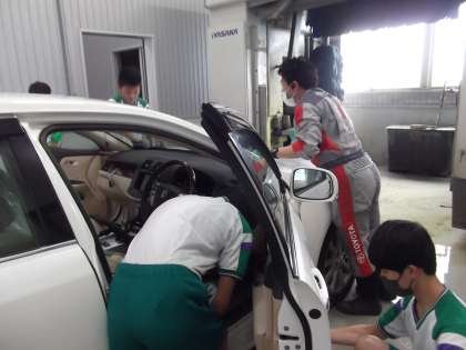 トヨタモビリティ富山株式会社 富山みらい北:お客様の車の洗車をしています。