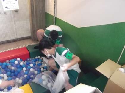県営富山武道館:キッズルームのカラーボールの片付けをしています。