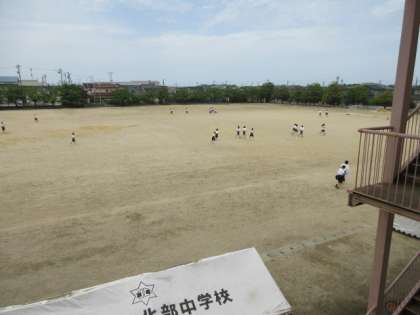 また、5限目が体育のクラスは、自主的にグラウンドを走っています。今日は気温が高いのですが、みんな一生懸命です。水分補給して、頑張って。