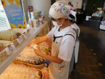 フルールリブラン豊田北本店:お菓子を並べています。お客様が選びやすいように、きれいに並べます。