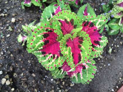 前庭の花々は、今日も明るい顔を見せてくれています。 校地で、珍しい植物を見つけました。