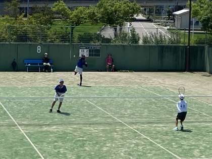 男子ソフトテニス会場です。 ダブルス1組が2回戦を戦っています。