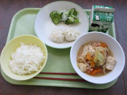 7月20日(木) 今日の給食 公開日 2023/07/20 更新日 2023/07/20 給食 「包子」は、中国の点心の一種で、小麦粉の生地を蒸してつくる伝統的食品で中に具を包んでいるもののことをいいます。今日の給食は、「えび包子」なので、中にえびが入っています。味わって食べましょう。 <今日の献立> ごはん 牛乳 韓国風すきやき えび包子 枝豆のマリネ