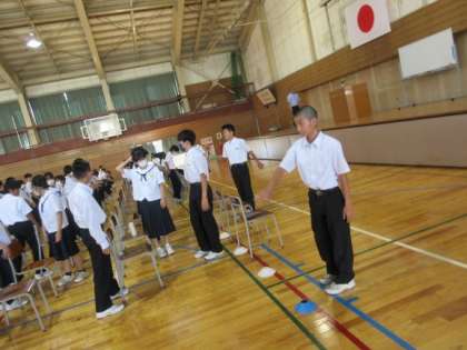 生徒会執行委員の提案により、集会時に生徒自身の手で集合・整列、集会終了後は退場指導まで行いたいと提案があり、終業式を前にそれを初めて実施しました。