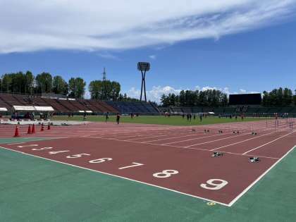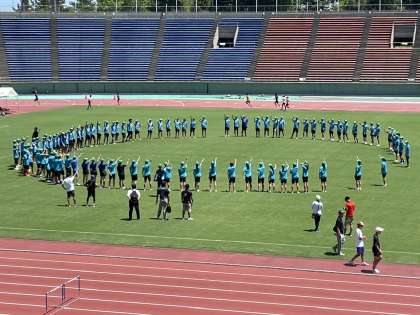 陸上競技部は、県選手団でシュプレヒコールを唱和しました。