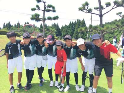 男子ソフトテニス部は、笑顔での集合写真です。明日の個人戦に照準を切り替えたようです。がんばれ! 北中生!!