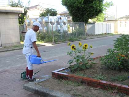 おはようございます! ひまわりの花がたくさん咲きました。 野球部のみなさん、水やりありがとう!
