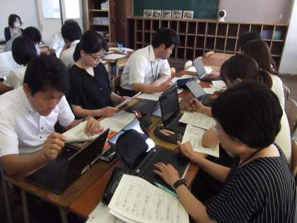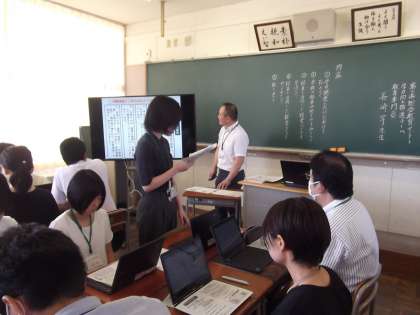 8/23(水)校内研修の様子1 公開日 2023/08/23 更新日 2023/08/23 北中NEWS 本日、学力向上推進チームの長崎教育専門員を講師として招聘し、校内研修会を行いました。スライドやクロムブック、印刷資料を使ってのハイブリッドな研修となりました。