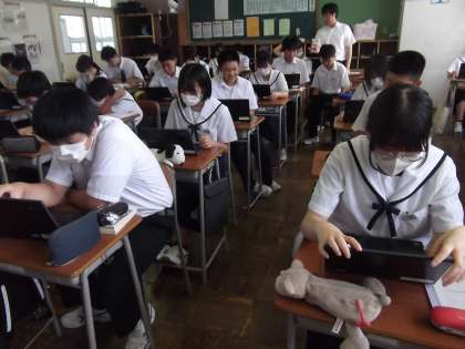9/1(金)3年生の授業の様子 公開日 2023/09/01 更新日 2023/09/01 第3学年 3年生は、社会、英語、総合的な学習の時間の授業に臨んでいます。 社会では、自由権について抽出し分類することを、グループで話し合いながら進めていました。