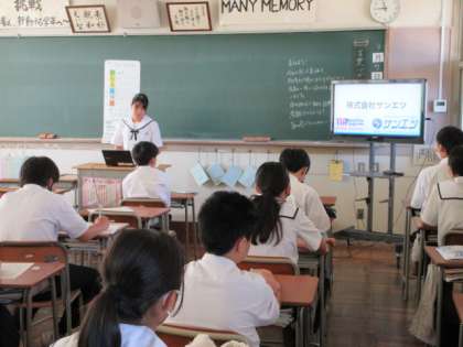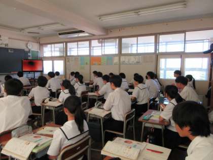 9/7(木)2年生の授業 公開日 2023/09/07 更新日 2023/09/07 第2学年 2年生は、総合的な学習の時間、理科、保健体育の授業に臨んでいます。 総合的な学習の時間では、「社会に学ぶ『14歳の挑戦』」での学びをスライドを使って発表していました。