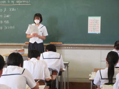 9/7(木)3年生の授業の様子 公開日 2023/09/07 更新日 2023/09/07 第3学年 3年生は、英語、美術、保健体育の授業に臨んでいます。 英語では、各自の経験談をスピーチしていました。緊張しながらも、堂々と発表していました。